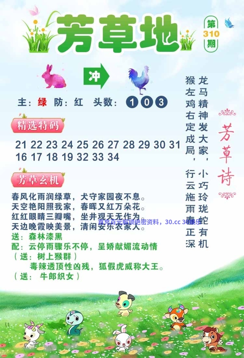 | 315期芳草玄机:心清自有一六连,二九三五显威名。五指山下苦徘徊,啃到骨头汪汪叫。回头望码一片绿,五门四字很不凡。有心捉码看十八,看好八九大胜出。 芳草诗:龙王天兵孙猴将,兔死狗悲守家园。牛郎玉兔遇猴头,天之骄子羊家将。 特肖:兔猪马蛇虎牛鸡 波色:红蓝 头数:204 |